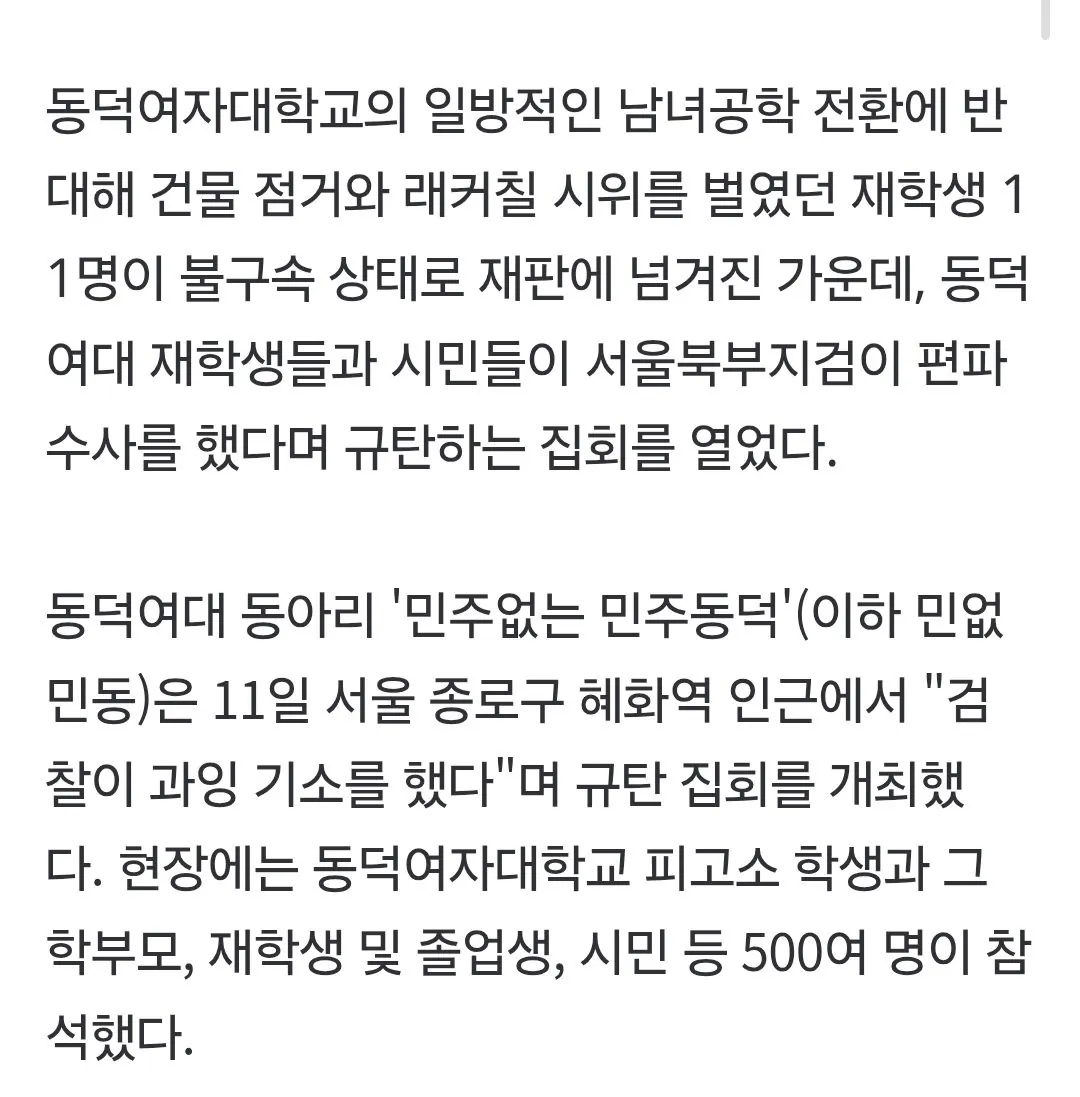 뜬금없이 검찰 과잉 편파수사 소리하는 동덕여대...