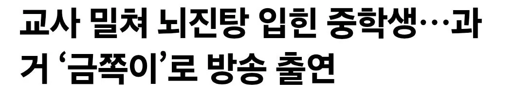 학교에서 교사를 밀쳐 뇌진탕 부상을 입힌 중학생이 과거 아동 문제 행동을 다루는 방송 프로그램에 출연한 이력이 있는 것으로 확인됐다.