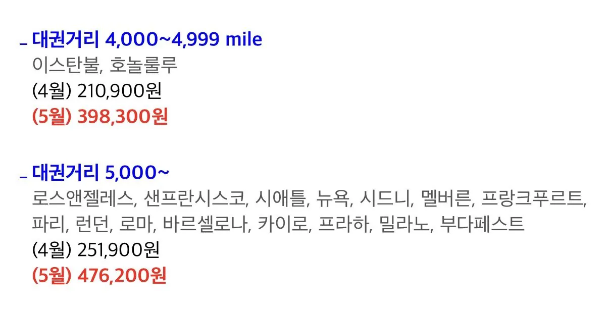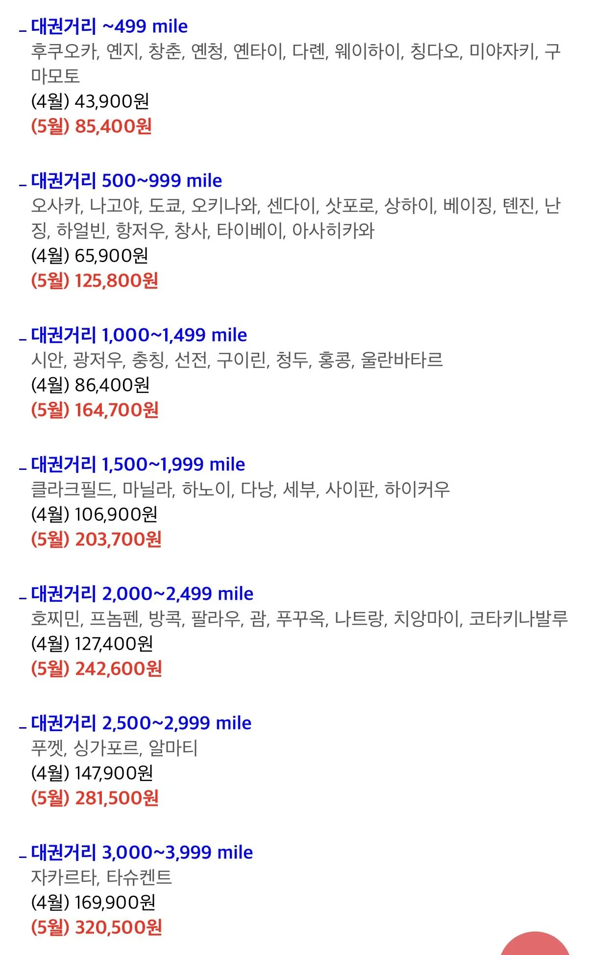 아시아나항공 5월 유류할증료 발표 ㄷㄷㄷㄷㄷㄷㄷ
