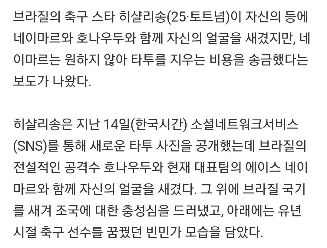 네이마르 "내 얼굴 타투 지워 ㅅㅂ"
