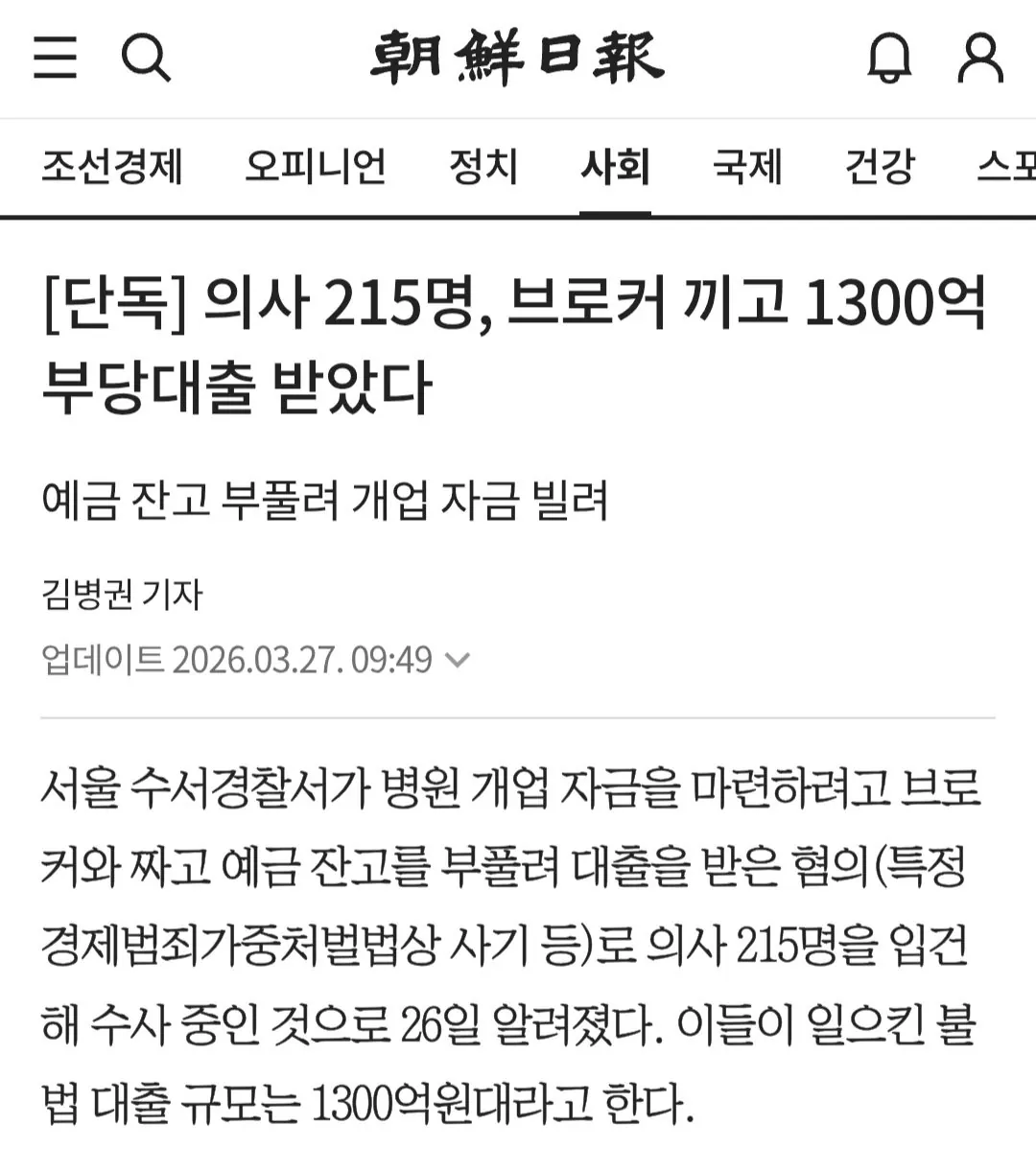 [단독] 의사 215명, 브로커 끼고 1300억 부당대출 받았다