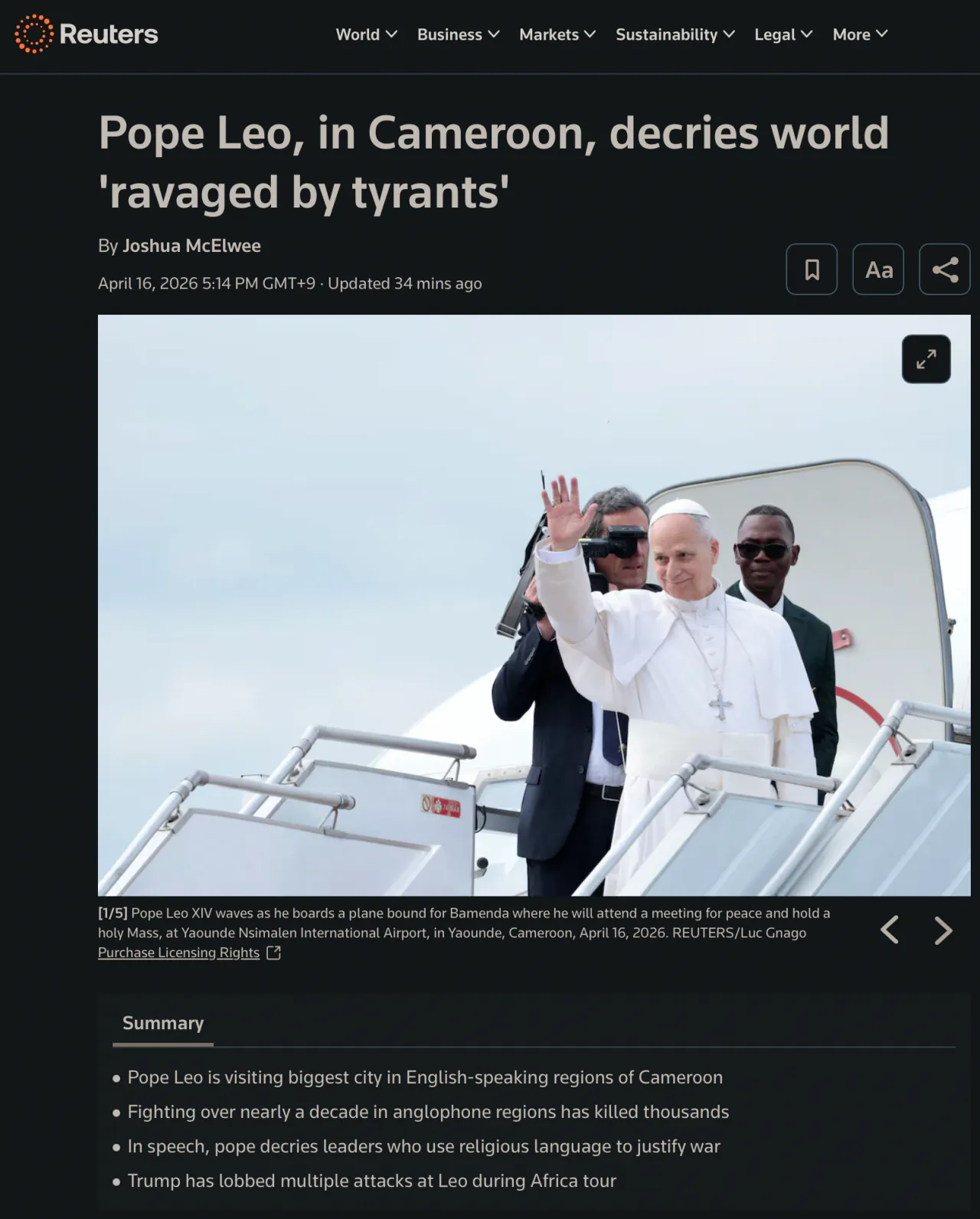https://www.reuters.com/world/europe/pope-leo-hold-peace-meeting-cameroon-amid-trump-attacks-2026-04-16/