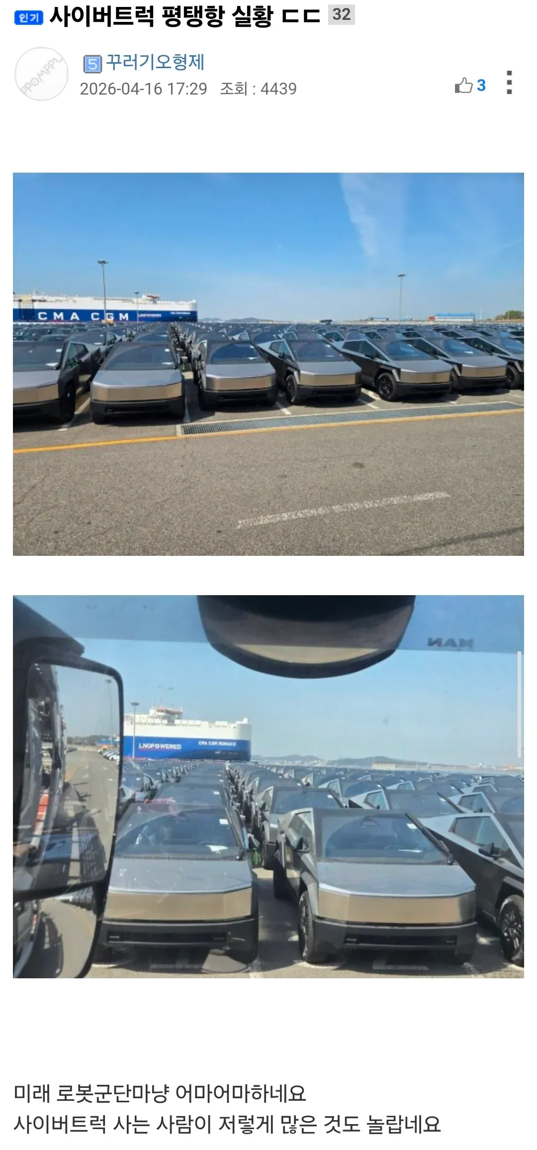 테슬라 사이버 트럭 평택항 실황