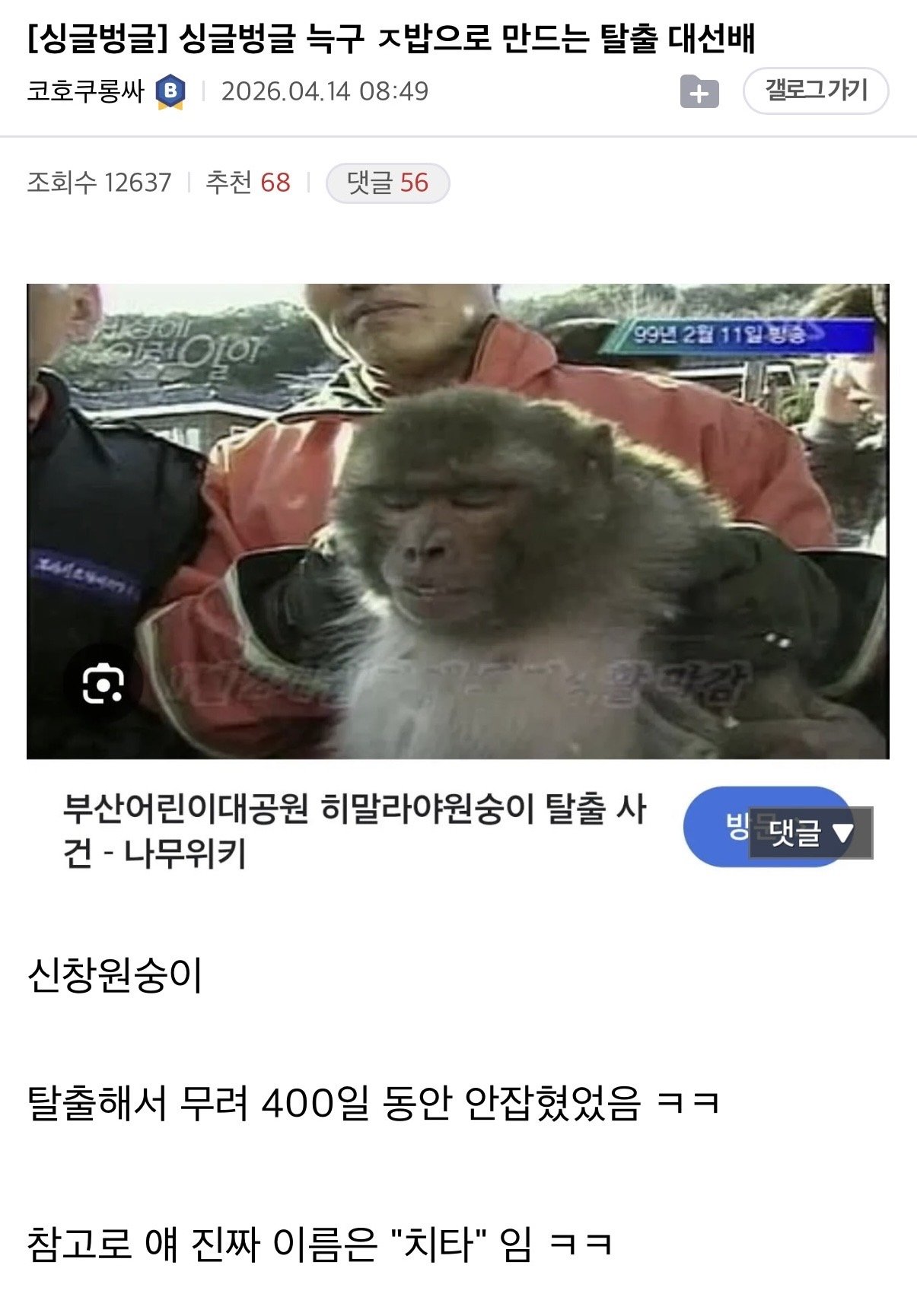 대한민국 동물원 탈출극 레전드 ㄷㄷㄷ