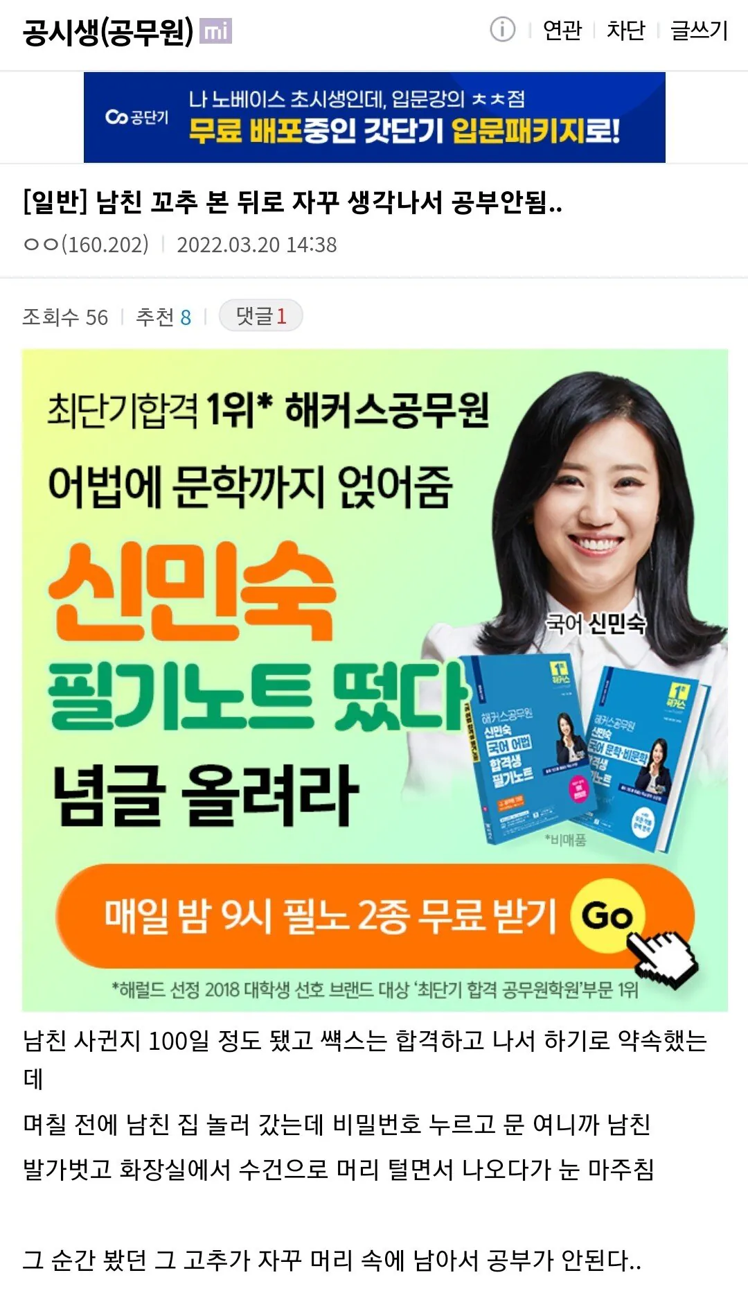 공시녀 "남친 꼬추 본 뒤로 공부에 집중이 안돼서 고민"jpg