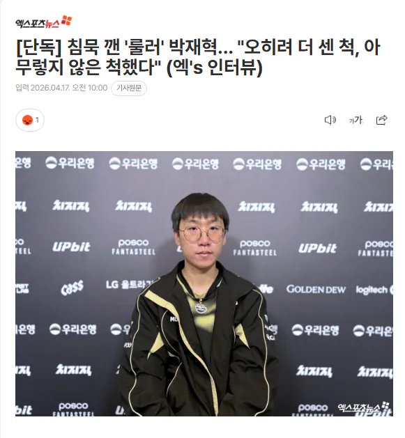경기 직후 '룰러'는 엑스포츠뉴스와 단독 인터뷰에 응했다. 3월 말 사안 보도 이후 에이전시 명의 입장문과 본인 SNS 사과문이 게재된 바 있으나, '룰러'가 직접 질의에 응하며 입장을 밝힌 것은 이번이 처음이다.