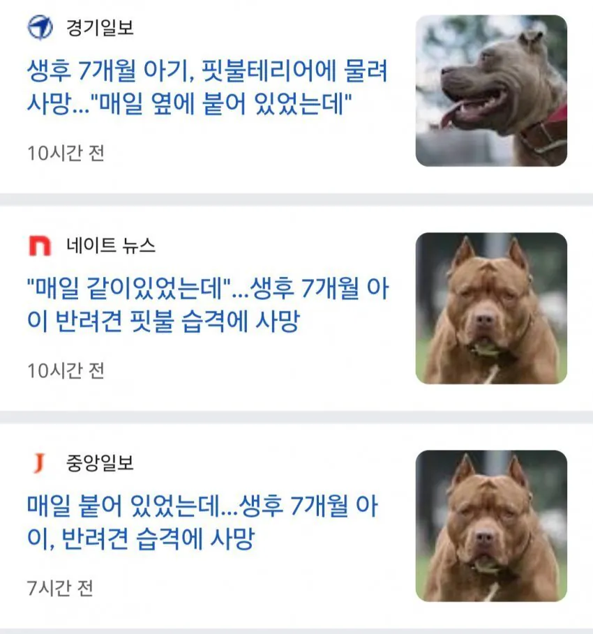 가정에서 반려견으로 기르던 핏불이 생후 7개월의 아기를 물게 되는 사건이 발생했다고 한다. 결국 아기는 극심한 상처로 인해 극단적 결말을 맞이하게 되었다.