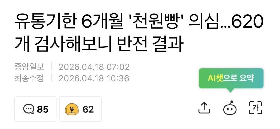요즘 천원대 빵들을 보면 소비기한이 2~6개월이나 되어서, 방부제를 그렇게 많이 넣는 건 아닐까 싶었다고 한다. 궁금해서 결국 620개를 검사해봤더니 결과가 의외였다고.