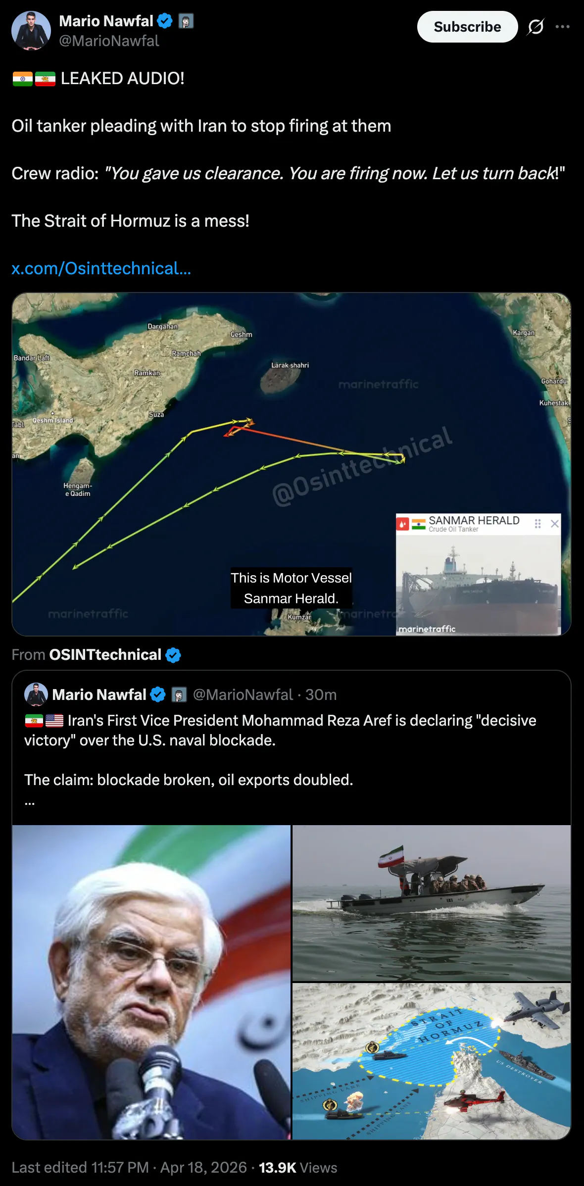 산마 헤럴드호 선원입니다.당신들이 저희 통과를 승인해주셨습니다.제 이름은 명부의 두 번째 줄에 있습니다.분명히 허가를 내려주셨는데요.지금 저희를 향해 포격을 하고 계십니다. 제발 멈춰주십시오.