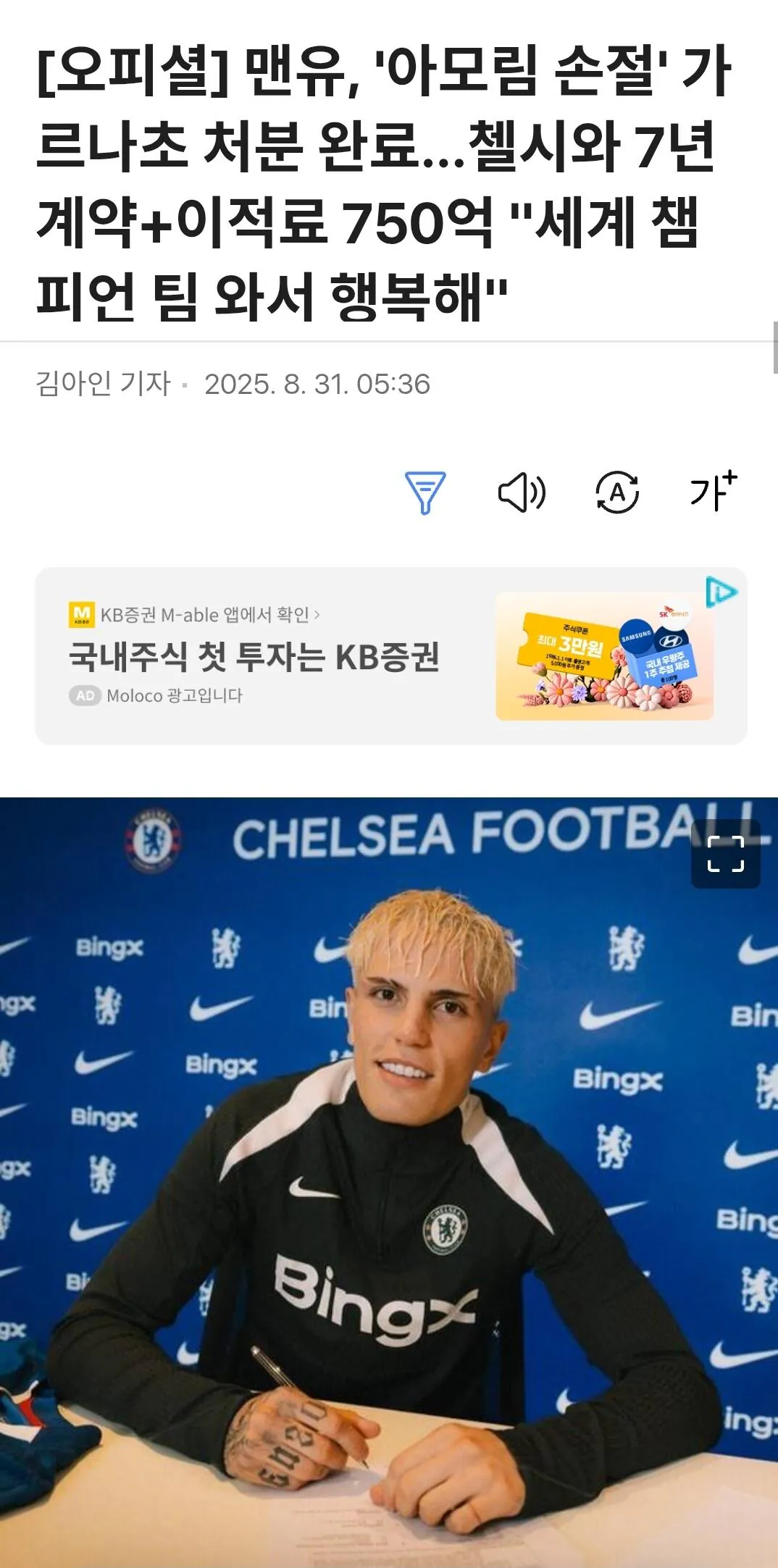 결국 가르나초가 첼시로 이적하기로 결정했다. 7년 계약에 4천만파운드(약 750억원) 규모의 이적료가 적용된다. 팬들의 반응도 긍정적인 상황이다.