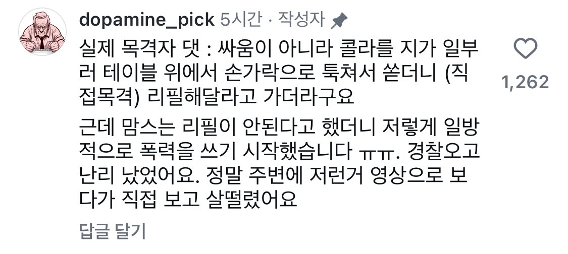 맘스터치 리필 거절에 번개같이 화낸 손님의 정체
