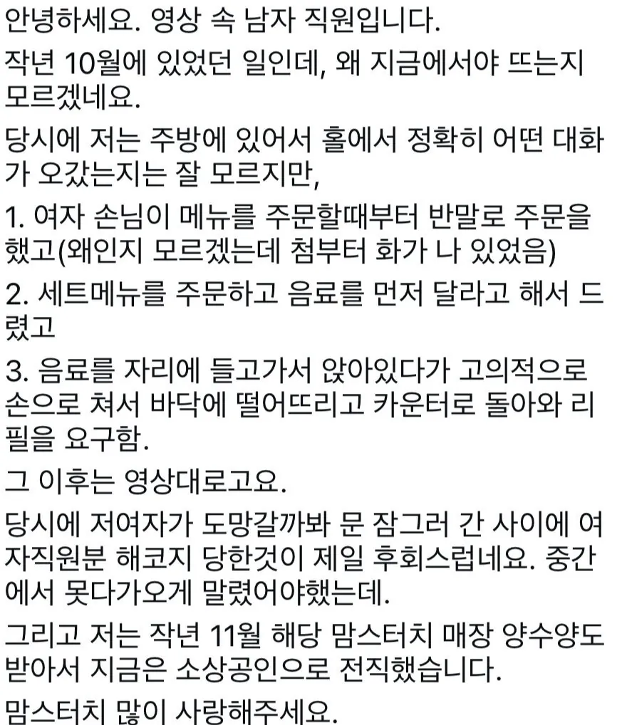 화제 맘스터치 남직원, 이제 사장 됨