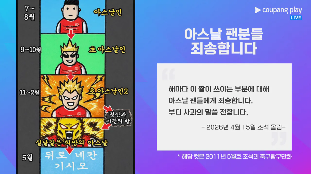 박종윤 아스날 동점골에 경악하는 표정ㅋㅋ