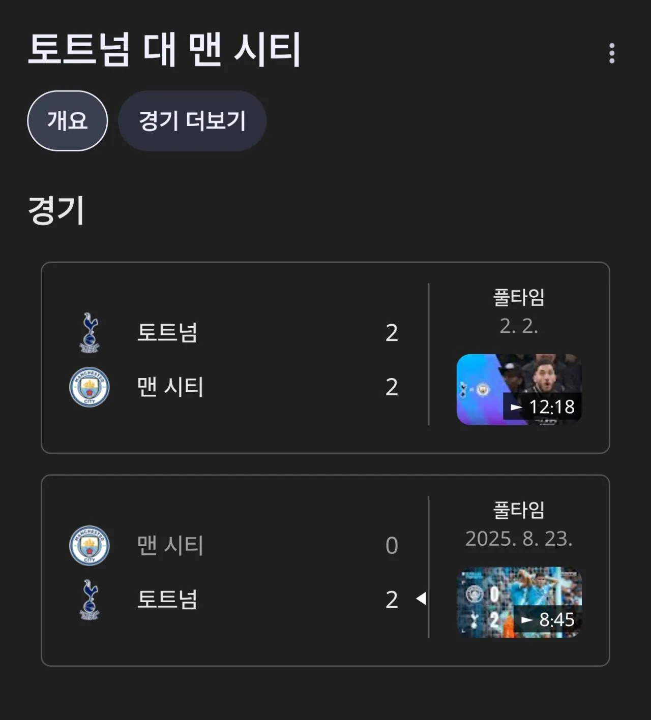 토트넘이 맨시티 상대로 유일하게 못 이김