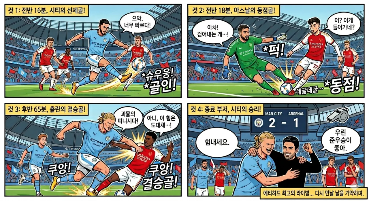 맨시티 아스날 더비 AI가 4컷 만화로 정리했대