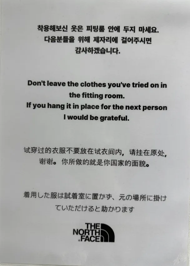 다국어 버전으로 제작된 캠페인은 기본적으로 같은 메시지를 담고 있는데, 중국어판에만 유독 '여러분의 행동이 조국의 위상을 결정합니다'라는 문구가 별도로 추가되어 있다고 함