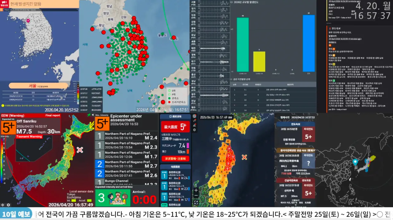 이번 지진의 최대 진도는 5강 (일본 기준)으로 확인됐습니다.진도 5강은 대부분의 사람이 균형을 잃을 정도이며, 건물들의 손상이 본격적으로 진행되는 수준입니다.쓰나미는 작은 규모로만 예보되고 있습니다.진원이 깊이 있어서 규모에 비해 지표에서의 진동이 약한 편인 점이 다행입니다.