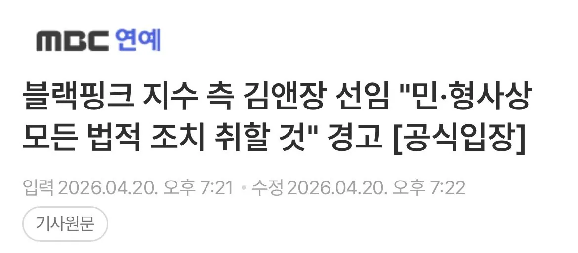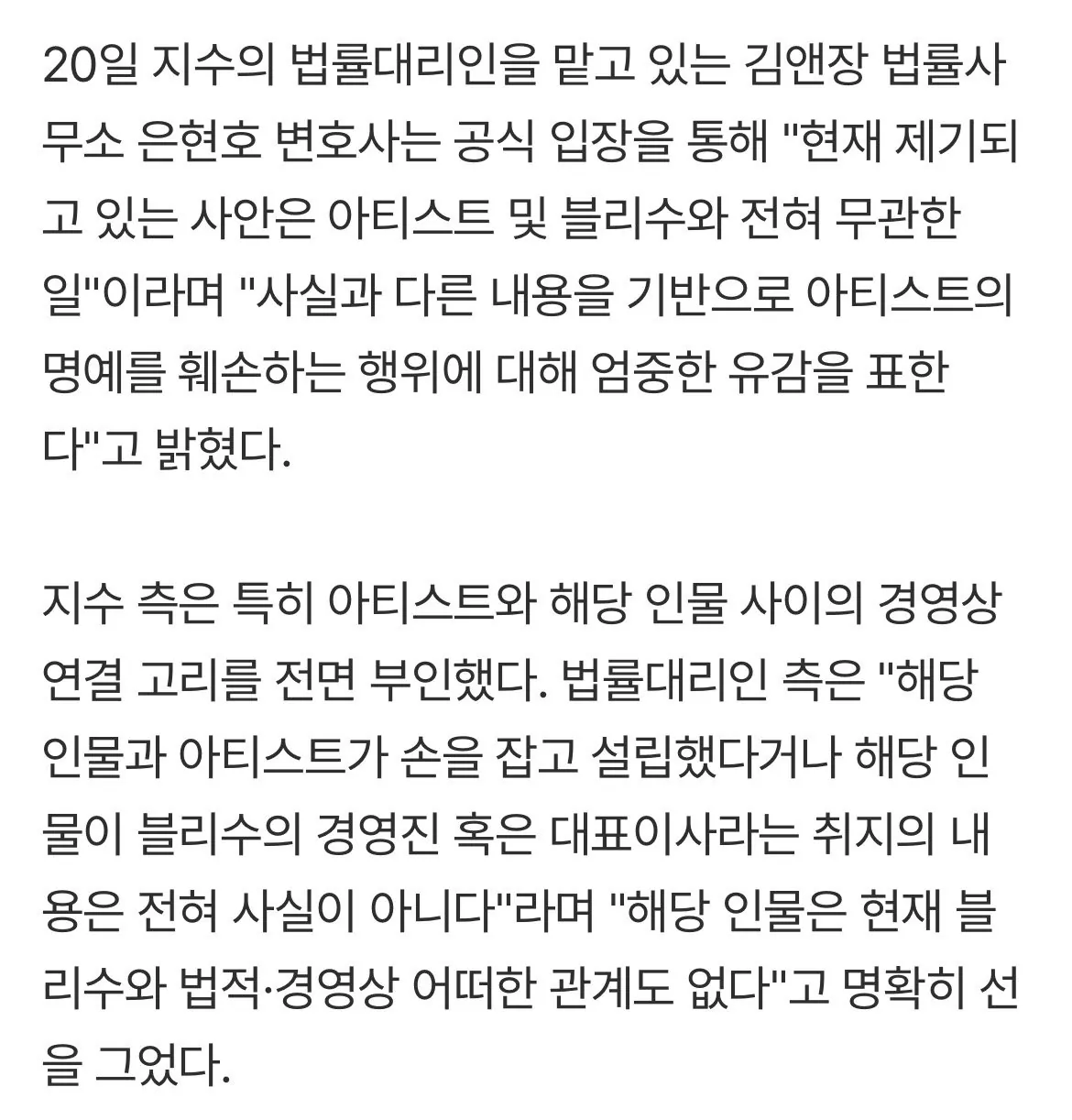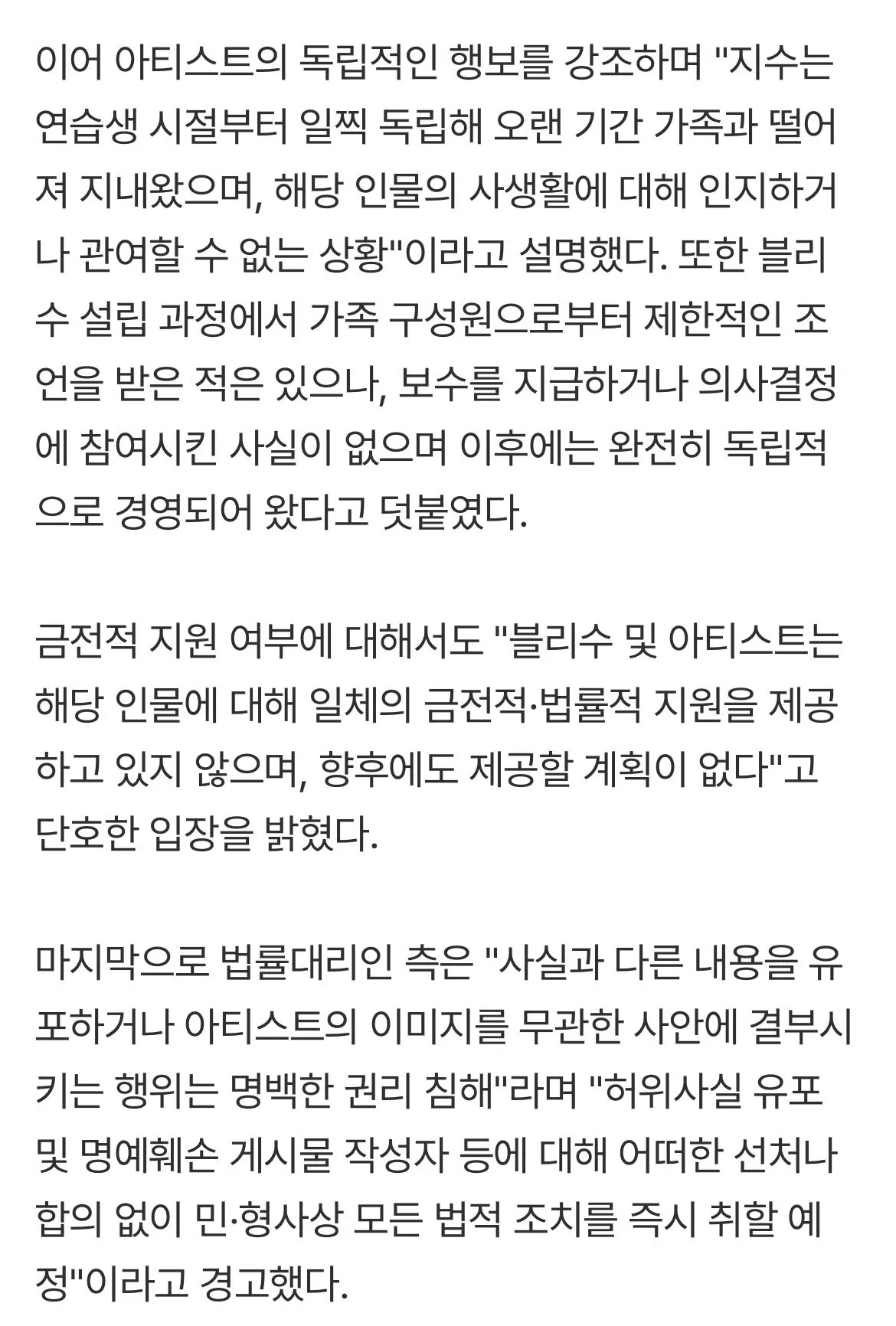 블랙핑크 지수 측 김앤장 선임 "민·형사상 모든 법적 조치 취할 것" 경고 [공식입장]
