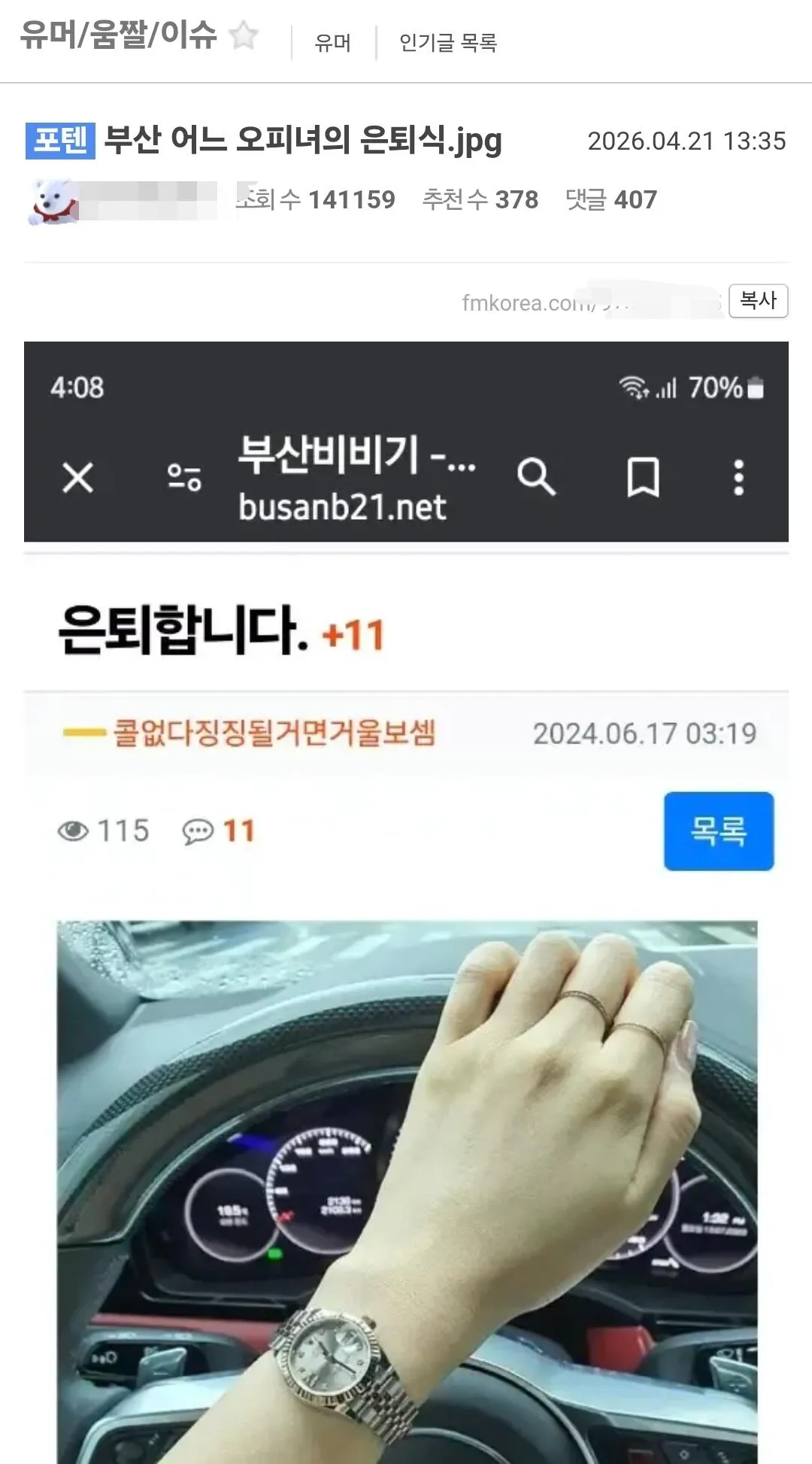 며칠 전 떴던 글인데사진을 더 찾아보니까 벌써 2020년에 시계 커뮤에서 돌던 거네2024년이 돼서 올라온 글치고는 사진이 좀 이상하다고 생각했는데혹시 다른 곳에서 퍼온 건 아닐까