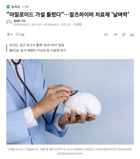 최근 알츠하이머 치료약이 제 역할을 못 한다는 새로운 연구 결과가 나오면서, 지금까지 믿어온 아밀로이드 가설이 다시금 논쟁의 중심에 서고 있다.