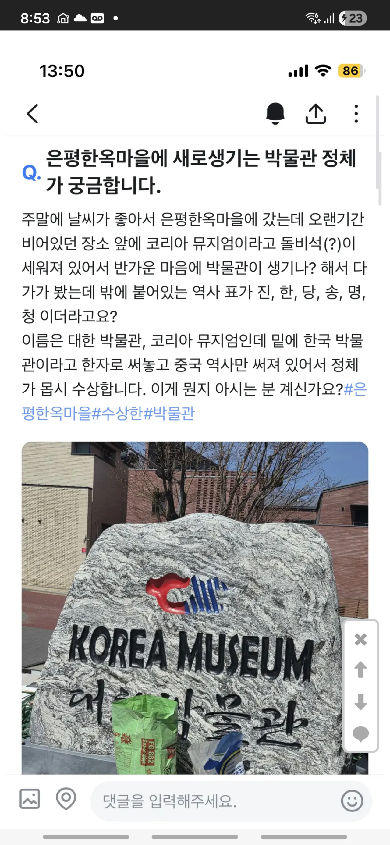 짱개들 서울침략함 은평구 주민들 민원ㄱㄱ
