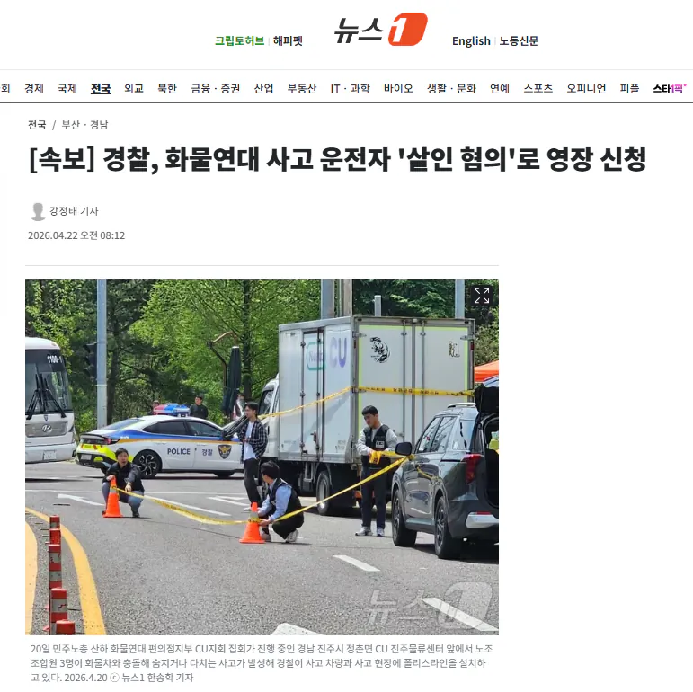 [속보] 경찰, 화물연대 사고 운전자 '살인 혐의'로 영장 신청