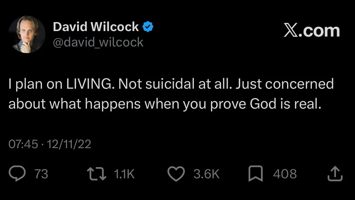 초자연 현상 전문 유튜버 데이비드 윌콕이 극단적 선택을 한 것으로 전해졌다. 당시 나이는 53세였고 유튜브 구독자는 51만 명을 넘었다.