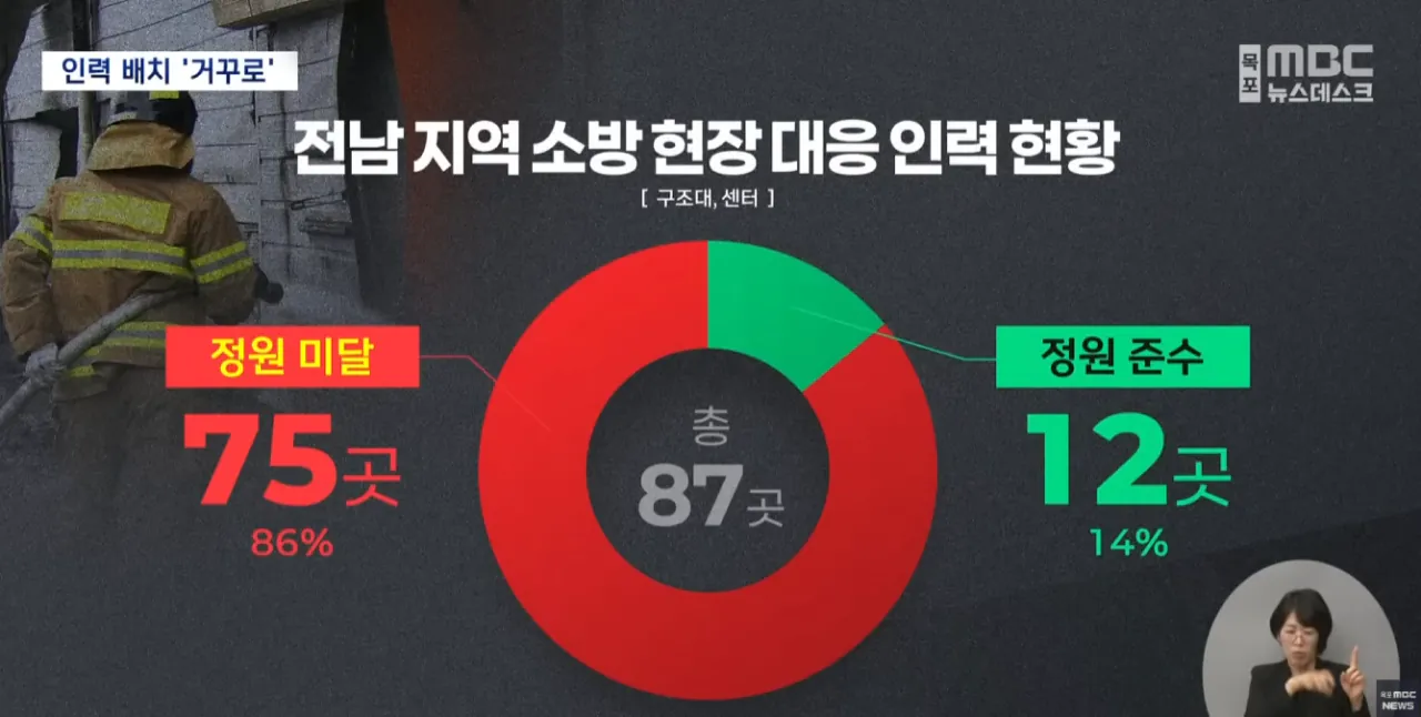 전남 지역 센터와 구조대 87곳을 조사한 결과 75곳이 정원 미달 상태였어
