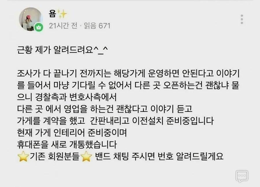 자리를 옮겼으니까 이제 새로운 곳에서 다시 영업 준비하는 중인 것 같아요