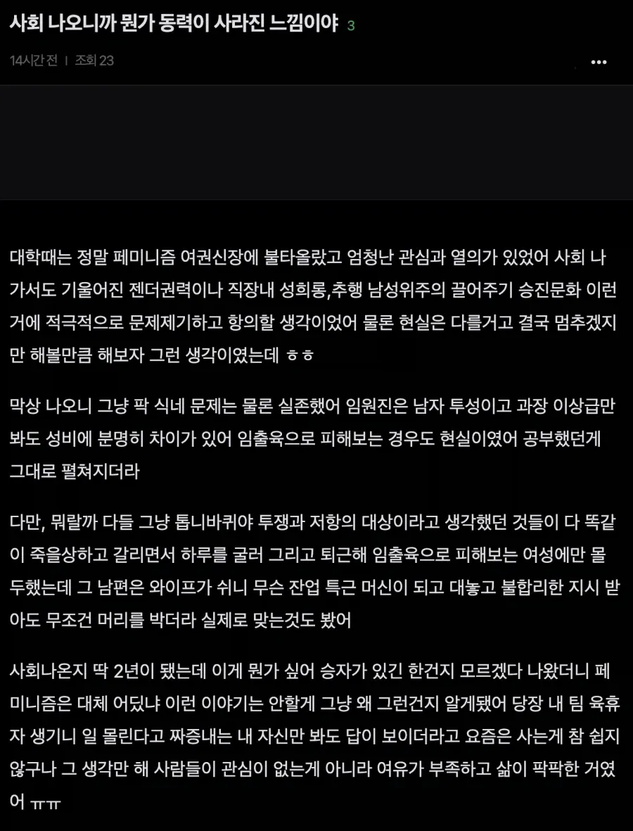 직장 다니면서 달라지는 진짜 페미들의 현실