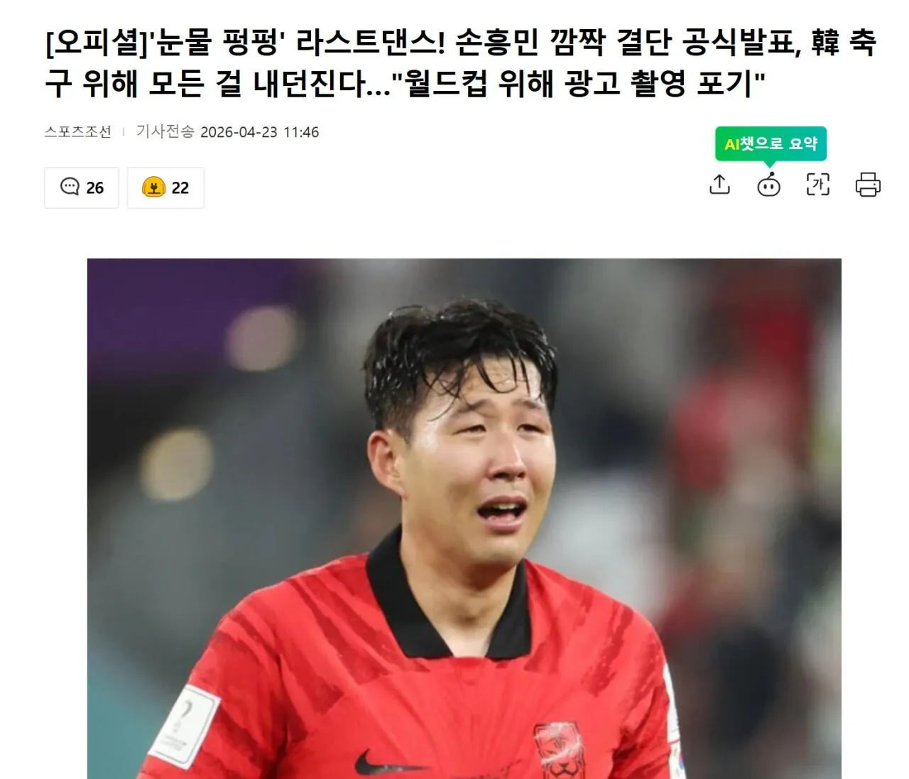 게토레이 코리아가 손흥민과의 신규 광고 촬영을 중단하기로 공식 발표했다. 대신 기존 광고를 재활용하기로 결정. "스포츠 역사는 땀으로 만들어진다"며 선수가 훈련장에 집중할 수 있도록 배려한 결정이라고 설명했다.