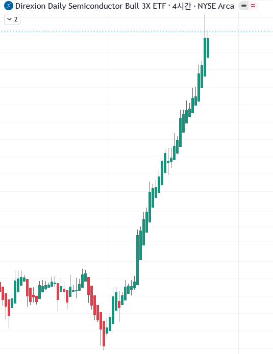 반도체 레버리지 3배 종목인 SOXL개미투자자들 사이에서는 거의 필수 보유종목 수준지난달 단 한 달 사이에 200% 폭등1년 전부터 지금까지 누적 수익률은 1500%이 정도 수익이 나면 다들 부자 됐다고 하더라