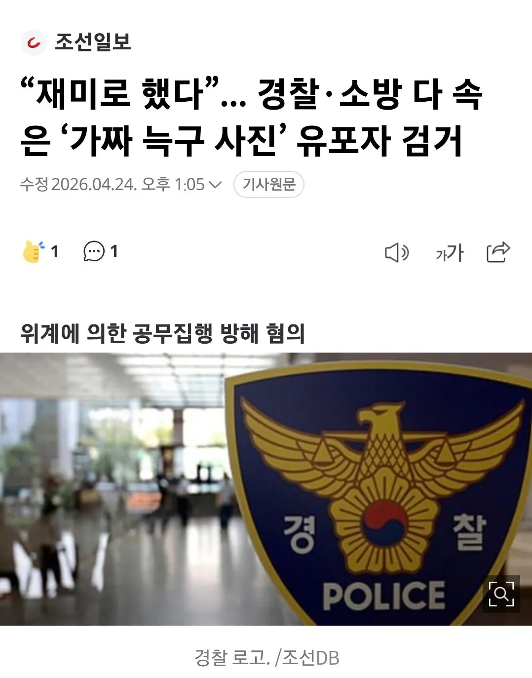 늑구 탈출 사건과 관련해 충격적인 소식이 전해졌다. 대전경찰청 사이버수사대는 AI 기술을 이용해 조작된 늑구 사진을 만들어 배포한 40대를 검거했다고 발표했다. 이 남성은 경찰과 소방의 수색 활동을 방해한 혐의(위계에 의한 공무집행 방해)를 받고 있다.