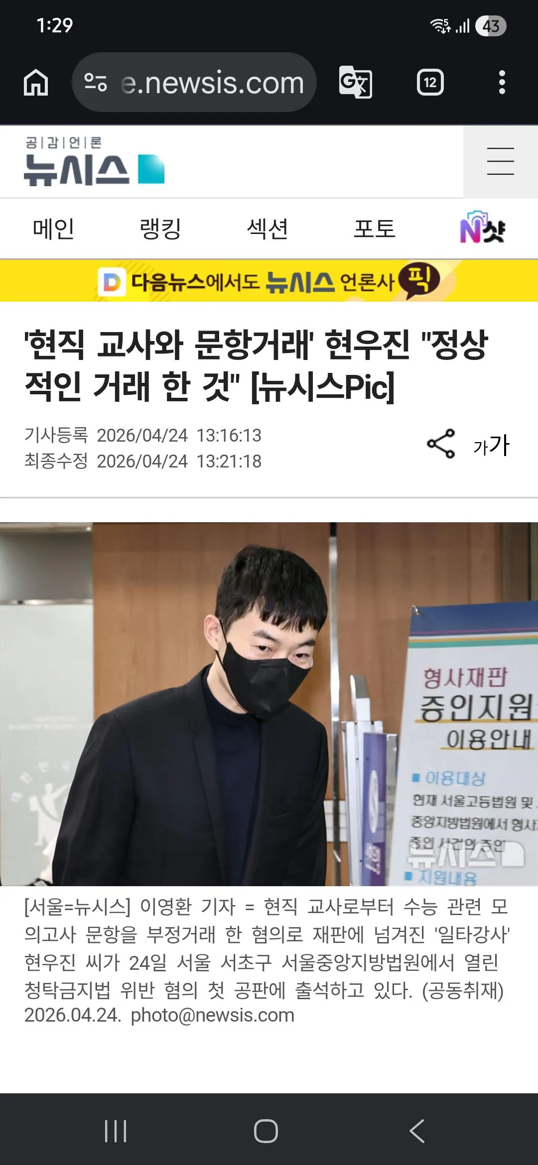 2026년 4월 24일 열린 첫 공판에서 현우진은 수억 원대 금품을 교사들에게 건네 모의고사 문항을 산 혐의를 전면 부정했습니다.