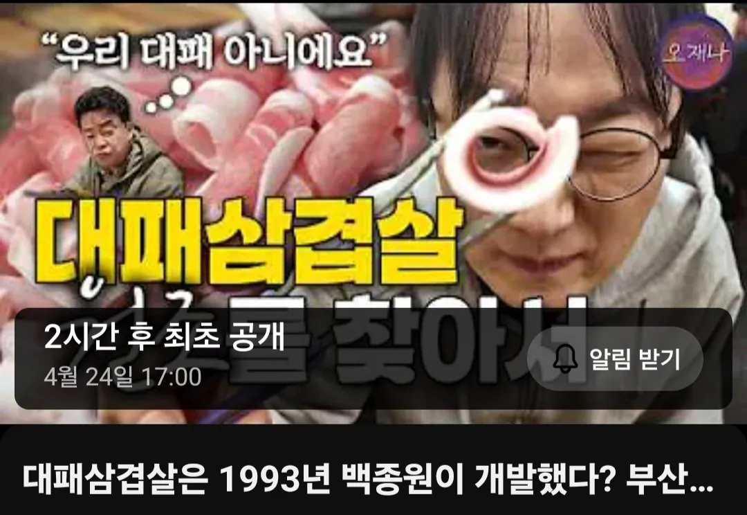 대패로드가 어떻게 시작됐는지는 위 링크에서 확인하면 되고...티저 영상 짤들 보면 출연진들 얼굴도 다 드러났더라.더본이 주장하는 93년보다 훨씬 예전부터 대패삼겹살을 접했다는 얘기는댓글들에서도 공감하는 사람들이 꽤 많은 듯.정작 본편에서는 어떤 내용이 나올지 궁금한데...곧이어 저녁 5시면 바로 확인 가능하다.
