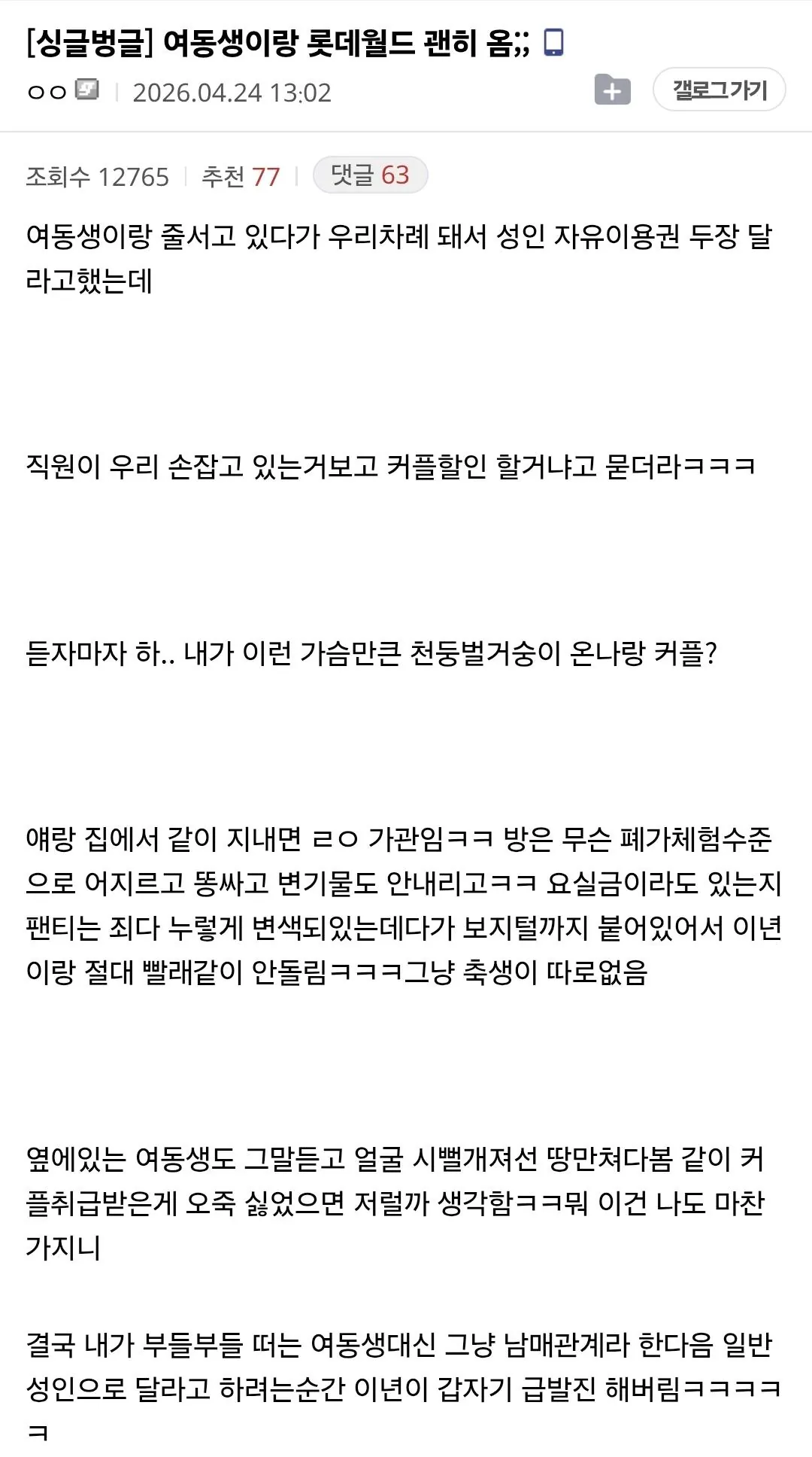 여동생이랑 롯데월드 왔는데 이게 뭐하는 짓;;;