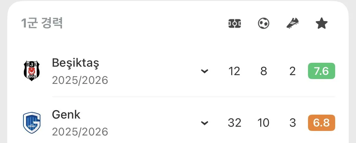 합계: 44경기 18골 5도움