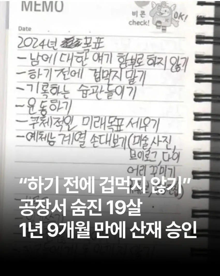 전남의 직업계 고등학교에 다니던 청년이 작년 가을부터 공장 현장실습을 나가 경험을 쌓기 시작했고, 올해 초부터 생산팀에 정식 입사해 근무해오고 있었다.6월 초 배관 점검 업무를 수행하던 중 예기치 않게 심정지로 쓰러졌고, 병원으로 이송되었으나 회복되지 못하고 말았다.그의 가방에 남겨진 것은 '주저하지 말고 해보자'는 자필 메모 하나뿐이었다.