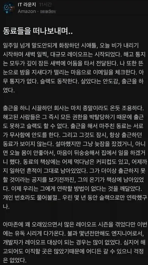 아마존이 사무직 인력을 16000명 규모로 한 번에 정리했다고 함