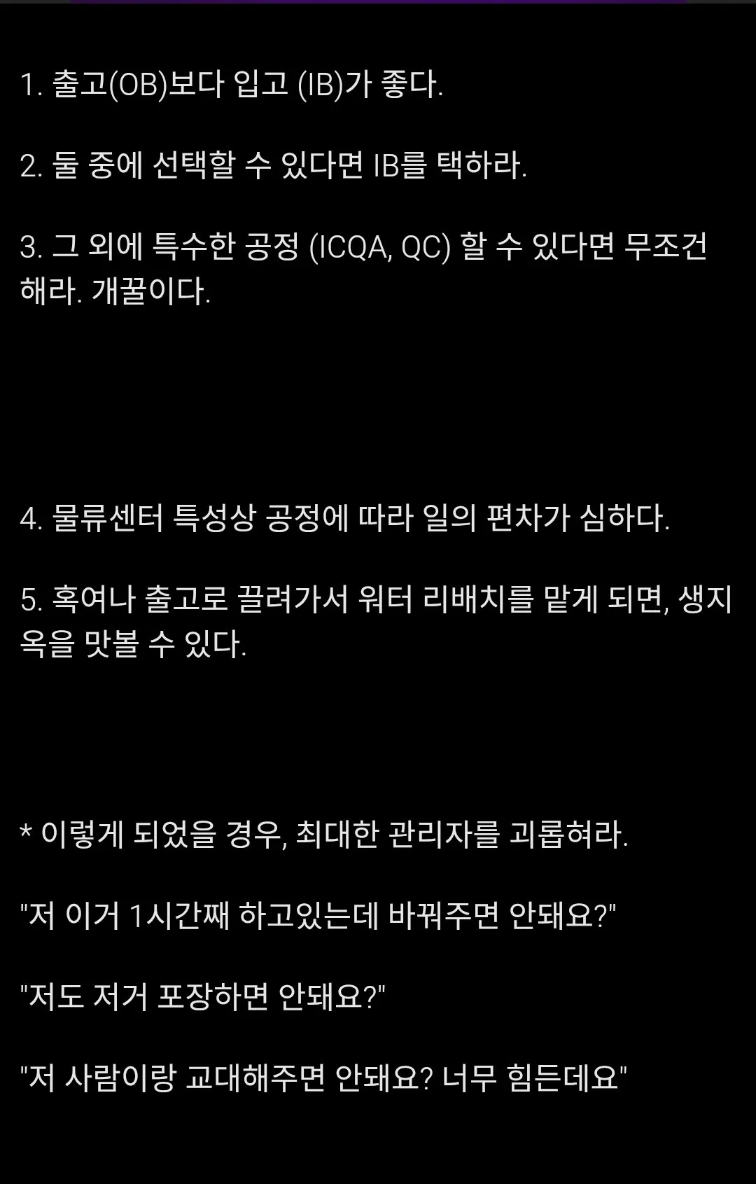 쿠팡물류센터 근무, 이렇게 버티면 낫더라
