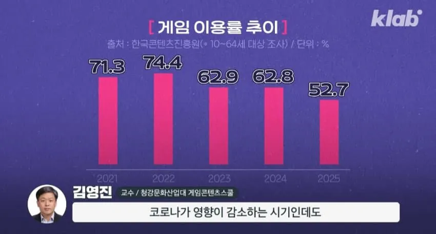 2030세대가 게임을 떠나가는 추세라고