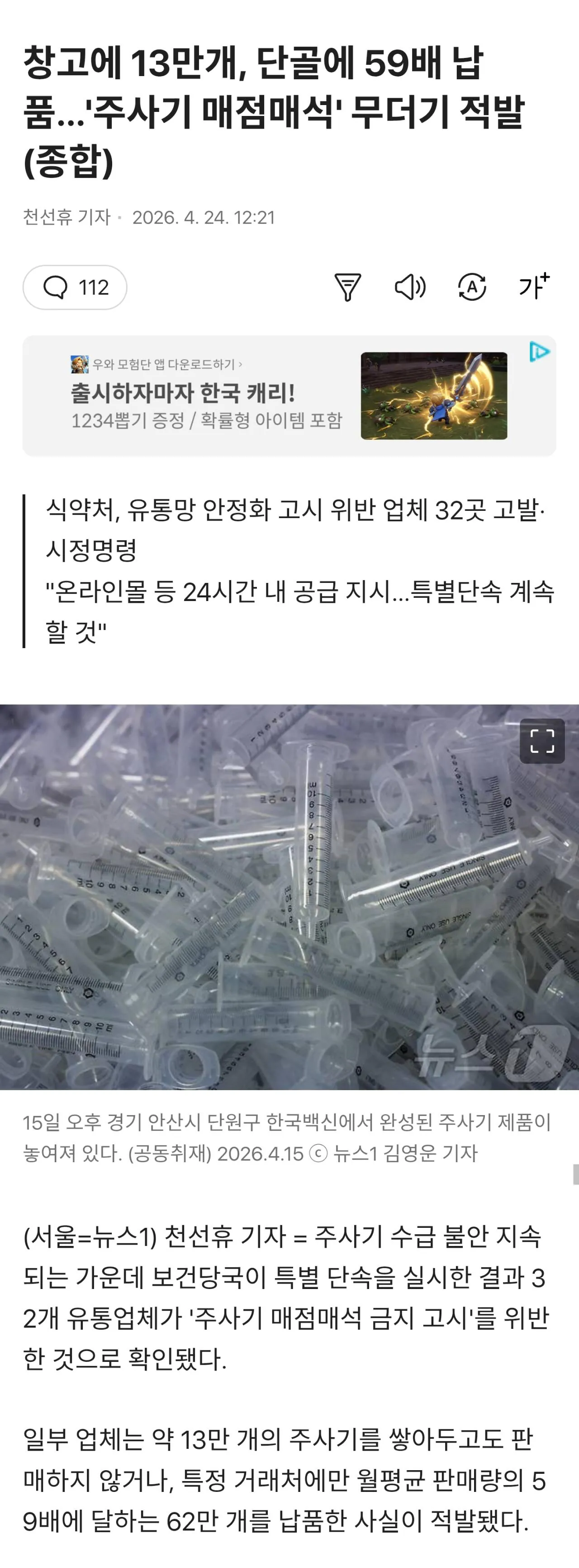 주사기값 왜 이렇게 폭등했냐는데 결국 이거더라