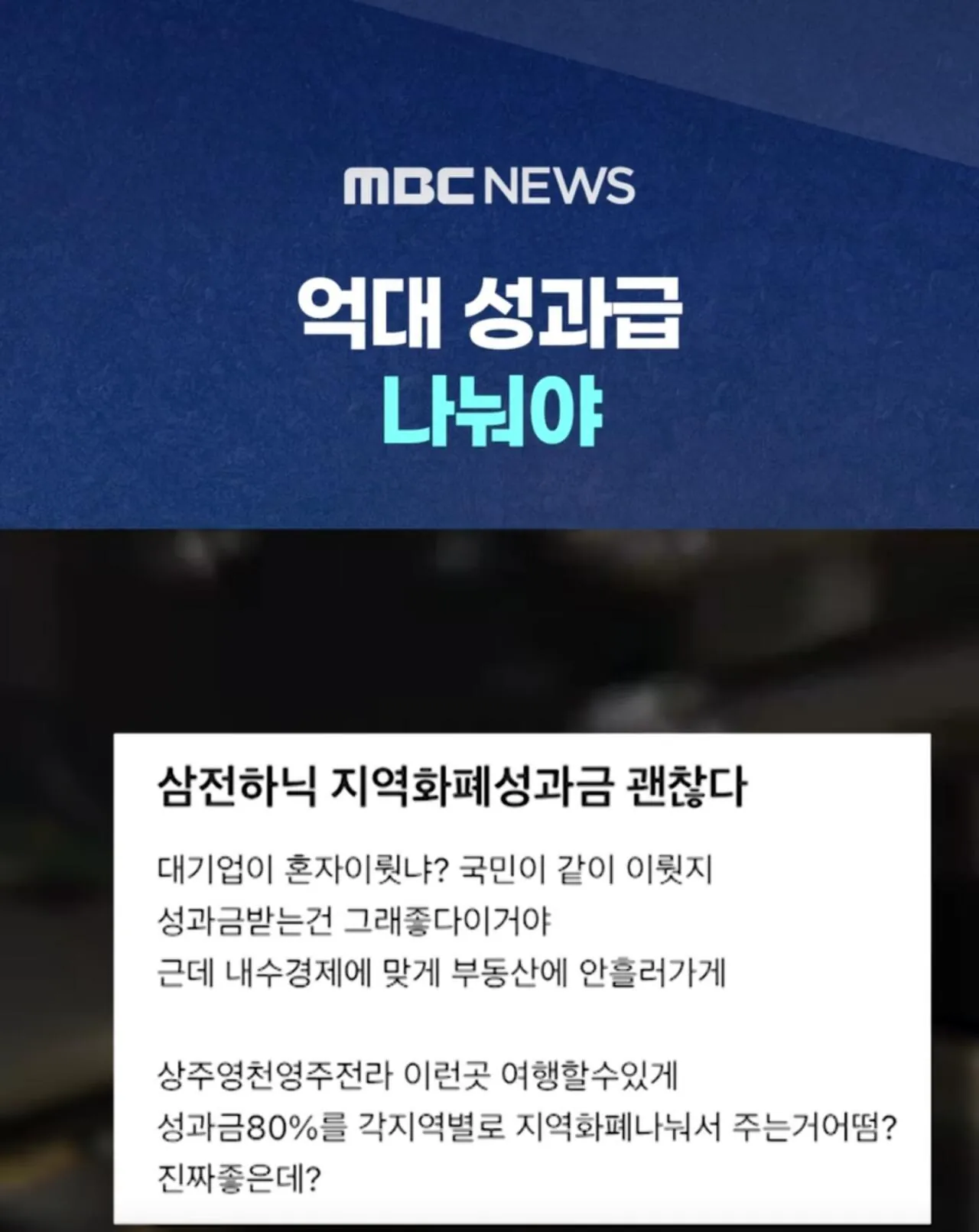 회사 직원들의 성과급을 일반인에게 나눠줘야 한다는 주장이 있다. 하지만 이는 정말 타당하지 않은 억지 논리다. 출처도 명확하지 않은 이런 말들이 계속 떠돌고 있는 가운데, 일반 시청자들은 이에 대해 어떻게 생각하고 있을까? 이제 이런 주제는 더 이상 논쟁할 가치가 없어 보인다.