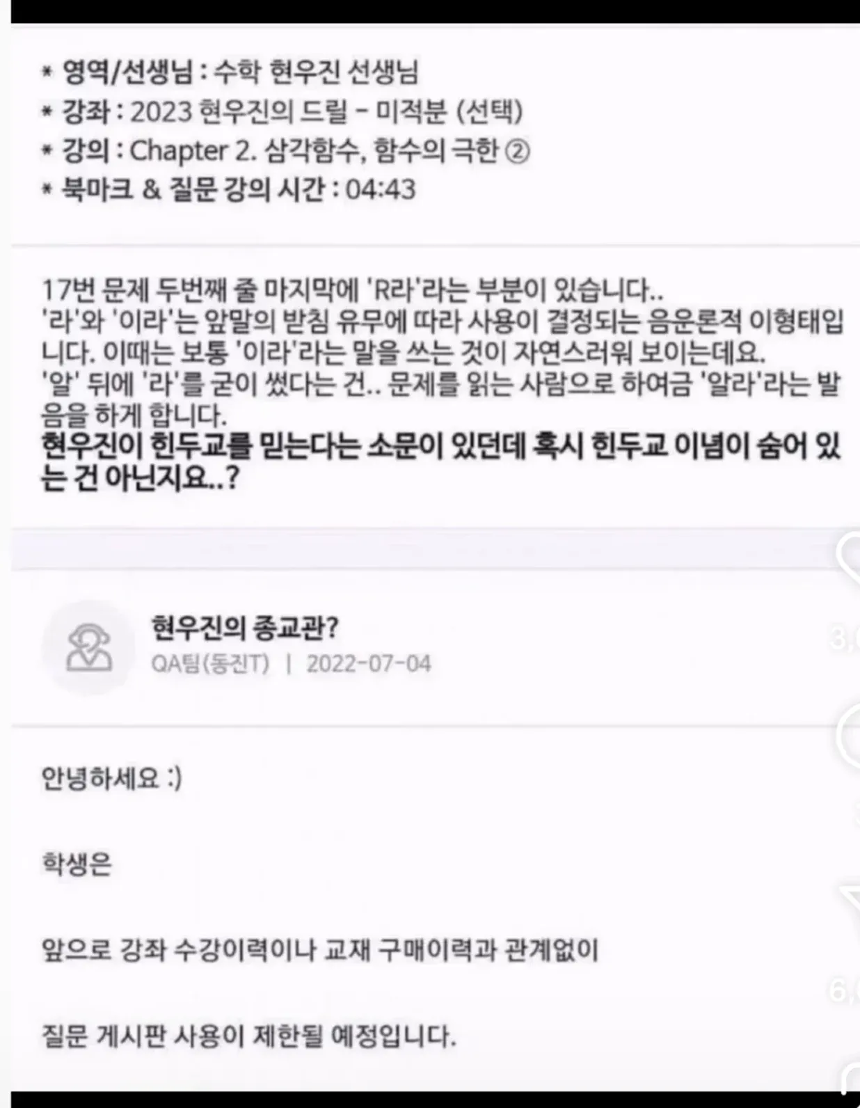 현우진이 수강생 봤을 때 한 반응 ㅋㅋ