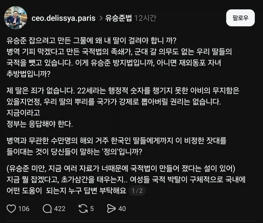 이중국적 자녀 때문에 한국국적 날아갔다는 썰