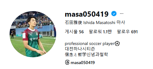오늘 피해선수는 2019년부터 K리그 소속인 일본출신의 이시다 마사토시