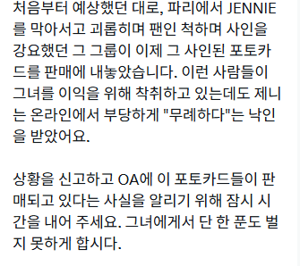 파리에서 제니 사인 받으려 몰려있던 사람들 판매행위 적발됨