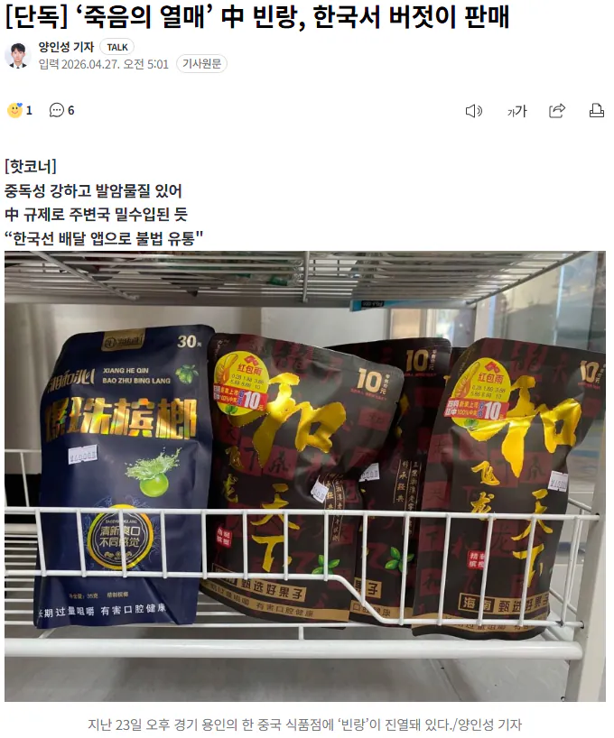 중국산 빈랑이 한국에서 버젓이 팔리고 있네