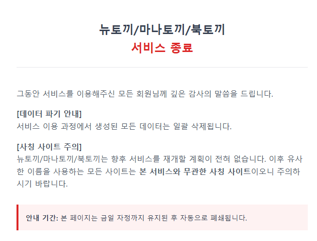 마나토끼/북토끼/뉴토끼 서비스종료 ㄷㄷㄷ
