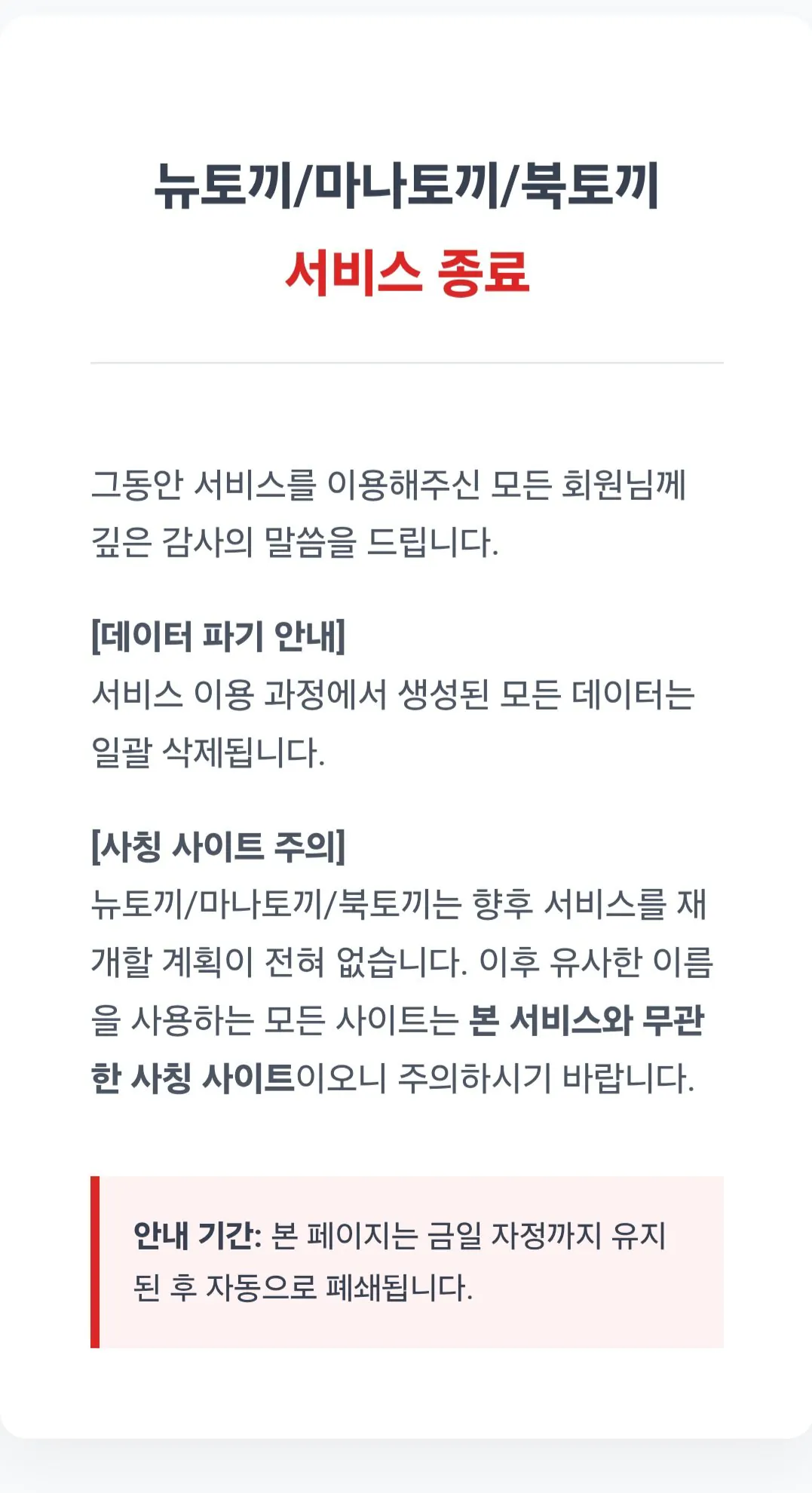 마나토끼/북토끼/뉴토끼 서비스종료 ㄷㄷㄷ